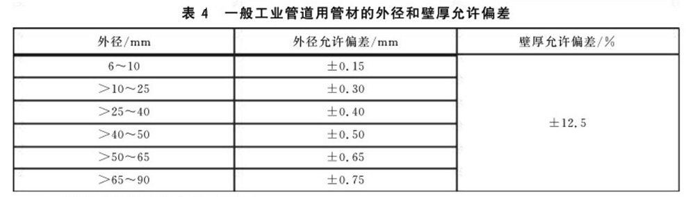 3.3.1 Zr-0、Zr-2和Zr-4管材的外徑和壁厚允許偏差應符合表2的規定。對于Zr-1、Zr-3和Zr-5管材,熱交換器用管材的外徑和壁厚允許偏差應符合表3的規定,一般工業管道用管材的外徑和壁厚允許偏差應符合表4的規定。